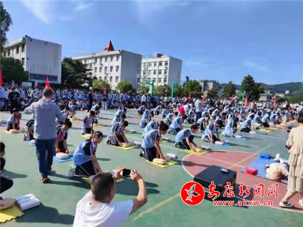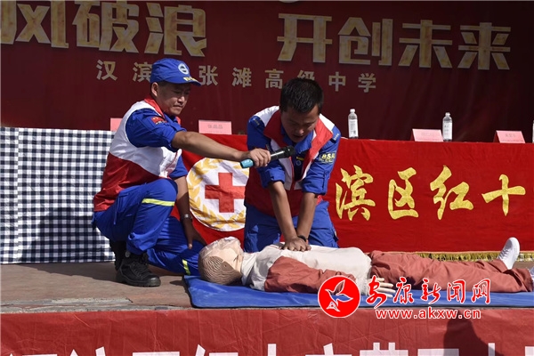 活動中,漢濱區(qū)區(qū)紅十字藍(lán)天志愿服務(wù)隊的隊員們結(jié)合溺水事故案例,對防溺水應(yīng)急處理、心肺復(fù)蘇等救護(hù)技能進(jìn)行了系統(tǒng)的講解和演示。隨后學(xué)生們組成的百人演練團在專業(yè)老師的指導(dǎo)下完成了心肺復(fù)蘇的實際操作。