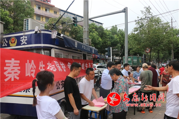 活動現場,工作人員通過懸掛橫幅標語、發放宣傳彩頁、現場講解等多種方式,向過往群眾宣傳習近平總書記生態文明思想、《陜西省秦嶺生態保護條例》、堅決抵制“五亂”行為等知識,為大家講解保護秦嶺的重要意義,引導群眾樹立“綠水青山就是金山銀山”“像保護眼睛一樣保護生態環境”“像對待生命一樣對待生態環境”的理念,強化自覺踐行綠色發展、守護青山綠水的意識,營造濃厚宣傳氛圍,號召更多群眾踴躍加入保護秦嶺生態環境的大隊伍中來。