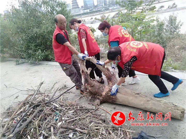 “草地上的那些浮草、枯枝和塑料袋,我們用垃圾車運走,有些木頭和大樹根得幾個人才抬得動,還有那些訊后的清淤沖沙工作難度較大。”大北社區護河員海燕說。9月8日,天氣放晴、水位逐漸下降后,老城街道辦事處創建辦迅速組織沿江各社區護河員開展漢江環境衛生清理整治,清掃河岸爛渣廢料,撿拾草地綠化帶垃圾雜物,沖洗淤泥河沙。截至目前,已清理汛后垃圾35車,清洗沖刷淤泥8000余平方米。目前,清理工作還在繼續,老城創建辦帶領著這支護河隊伍緊張有序的忙碌著,河道和江邊的垃圾清理工作正穩步推進。