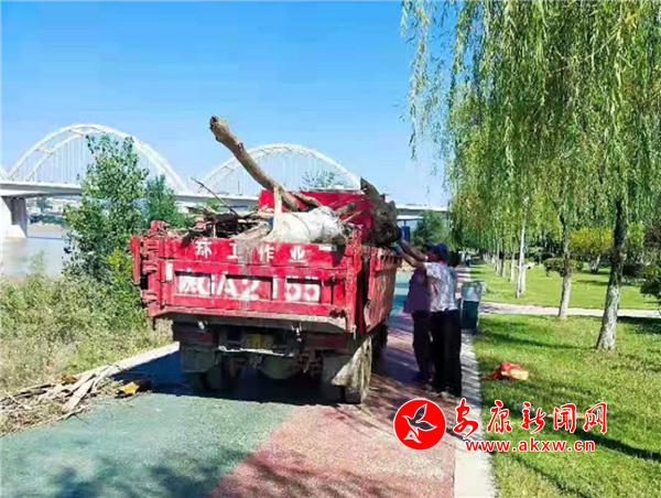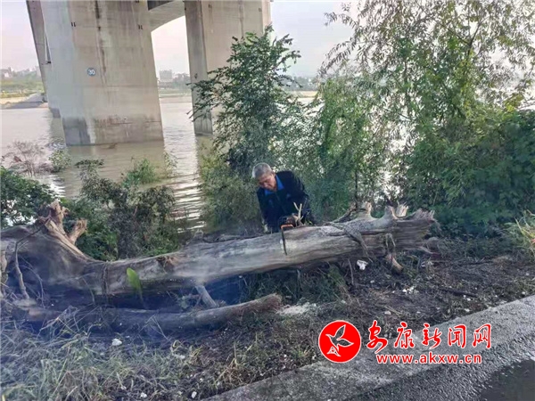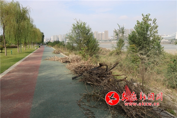 行動中,護河員和專業施工隊員密切配合,對漢江南岸金川段、心石段、油坊段、白廟段河道護坡及岸邊的雜樹木進行拉網式清理整治,工人們利用電鋸、刀等工具,將粗大雜樹木進行切割規整,連同細小樹枝雜草一道搬至步道,然后用車統一運走。據了解,截至9月23日,共清運走雜樹木60余車,讓河岸與周邊的美景更好融為一體。
