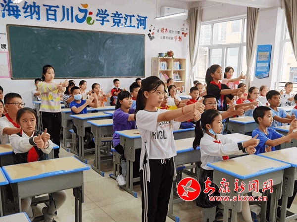 同時,學校把周三課后延時服務時間為學校社團活動時間,這一天為學校無作業日。其中一二年級以班為單位開展音樂、美術和體能的班級社團活動,三至六年級各班學生實行走班制,根據自身興趣愛好,分別加入到鼓號隊、電子琴、非洲鼓、古箏、合唱、播音主持、拉丁舞、民族舞、街舞、戲劇、兒童畫、紙盤畫、書法、英語口語、足球、乒乓球、軍體操、跆拳道、信息技術和機器人等26個社團中去。通過全員社團活動,極大地豐富了學校課程內容,激發了學生的參與興趣,促進了學生的全面發展。為了解決兩節延時課之間氣氛沉悶和學生運動量不足的問題,在每天兩節延時課之間安排了5分鐘的手指舞課間操,讓學生在延時課時間有了全身心放松的時段和內容。