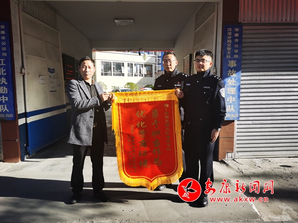 本網訊(記者 唐正飛)11月9日,中心城區安康市公安局漢濱分局交警大隊事故處理中隊門口,安徽籍市民燕明輝一行將一面印著“勇于擔當作為,優化營商環境”的錦旗送給辦案交警手中。