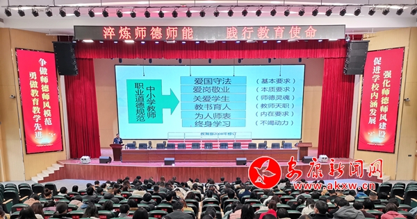 本網訊(通訊員 李晴)11月21日,漢濱初中高新校區邀請安康市教研室副主任、陜西省教學能手、陜西省學科帶頭人、陜西省名師工作室主持人吳萬強老師為全校教師進行師德師風專題講座。
