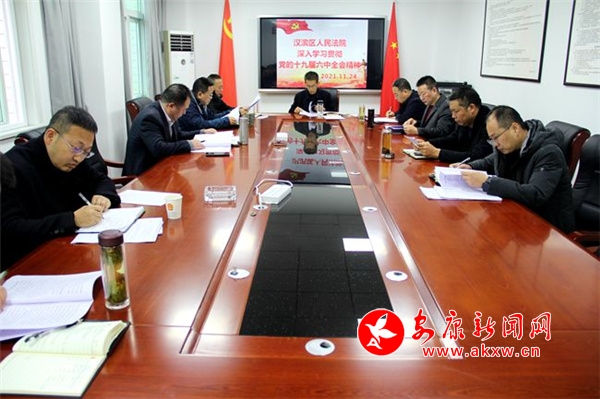本網訊(通訊員 劉華渝)11月24日,漢濱區人民法院召開黨組會議,學習貫徹習近平總書記在黨的十九屆六中全會上的重要講話和全會精神。