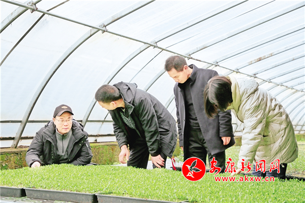 “你這個苗圃要及時分栽,要注意溫度,濕度,最近雨雪天氣更要注意晝夜溫差。”區農技推廣站專家張開軍正在指導安康榮秀園農業發展有限公司負責人陳保安。