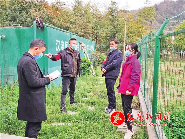 區生態環境分局干部檢查農村生活污水處理設施運行情況 葉偉 攝