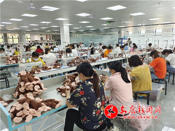 原來,這天是新德潤玩具有限公司開業(yè)的日子,門口的人群都是趕來上班的工人。不一會(huì),一字排開的加工車間里,一百余名工人整齊就坐在機(jī)器前,紛紛低頭忙著手里的活,有條不紊地進(jìn)行著毛絨玩具加工生產(chǎn)。