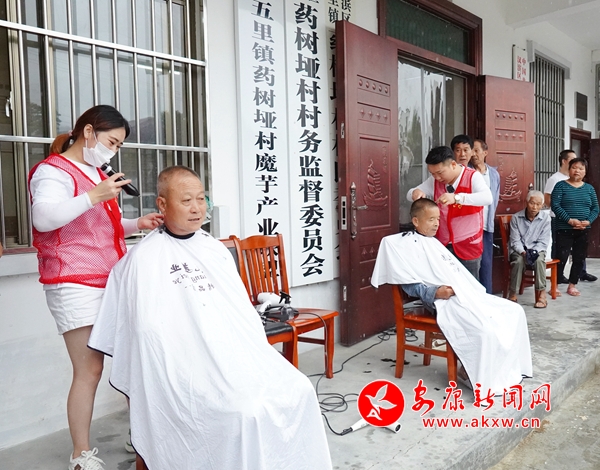 7月19日一大早,五里鎮(zhèn)藥樹埡村熱鬧非凡。很多村民陸續(xù)趕到村委會(huì),排隊(duì)理發(fā)。“我平常理發(fā)要去鎮(zhèn)上,來(lái)回一趟得兩三個(gè)小時(shí),還要花二三十的車費(fèi)。這次有人來(lái)免費(fèi)給我們理發(fā),真開心。”剛理完發(fā)的曹德秀阿姨高興地說(shuō)。UXH安康新聞網(wǎng)