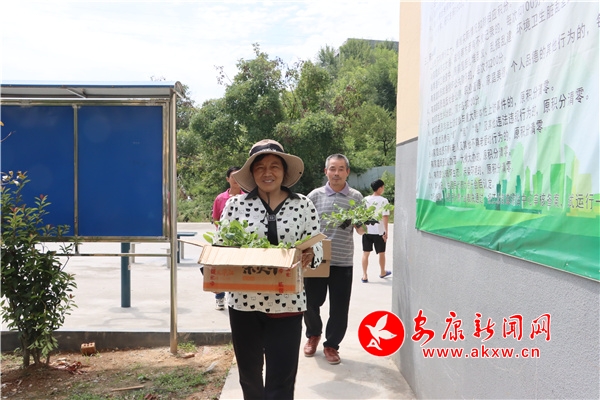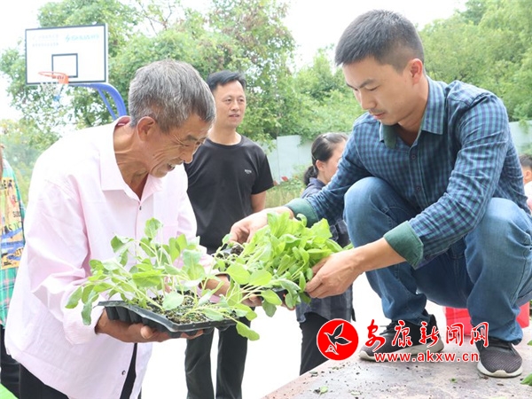 “白菜30株、花菜20株,拿好啊。”社區支部書記劉興文一邊說著一邊把菜苗遞到吳芳手中。