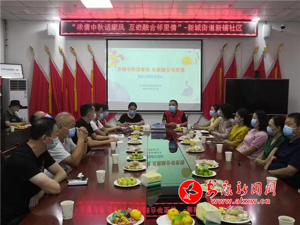新鋪社區(qū)組織黨員群眾開展“濃情中秋話家風(fēng) 互嵌融合鄰里情”主題活動,觀看微視頻《中秋節(jié)的來歷》,品讀中秋詩詞,互道祝福。