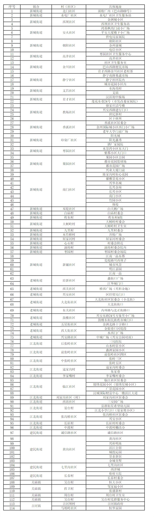 共設置114個采樣點(見附件),由各街道、鎮政府統一安排采樣點設置、人員組織、秩序維護。檢測對象按照街道和鎮政府要求,分時段有序到指定地點進行采樣,避免人員聚集。
