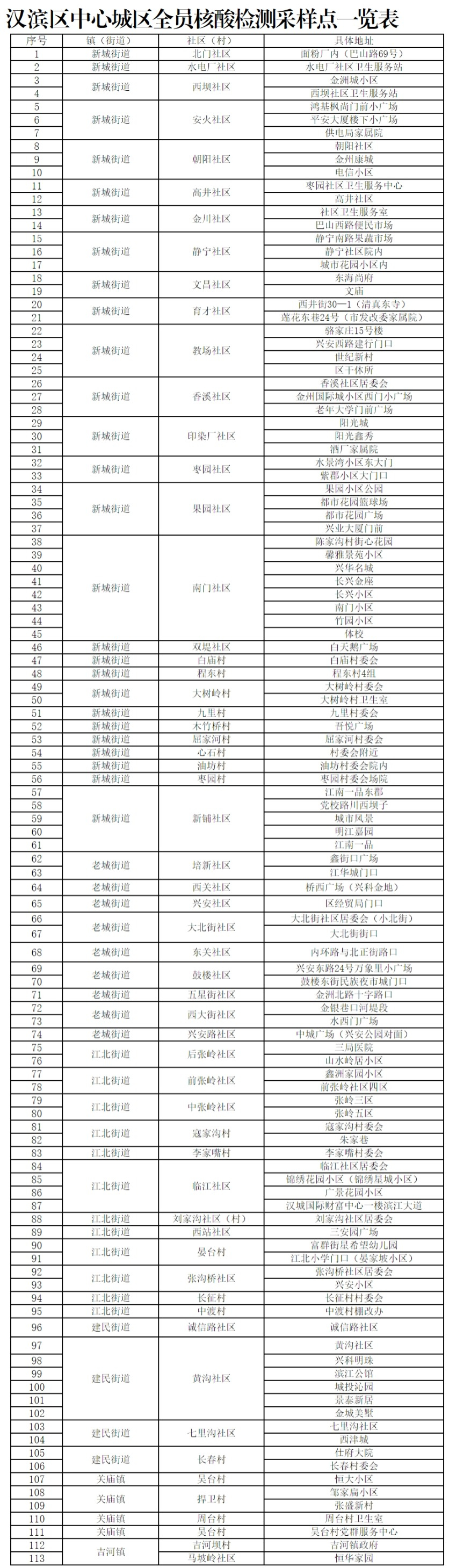 附件:漢濱區(qū)中心城區(qū)全員核酸檢測采樣點(diǎn)一覽表