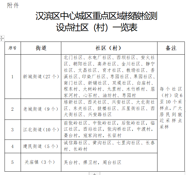 附件:漢濱區中心城區重點區域核酸檢測設點社區(村)一覽表