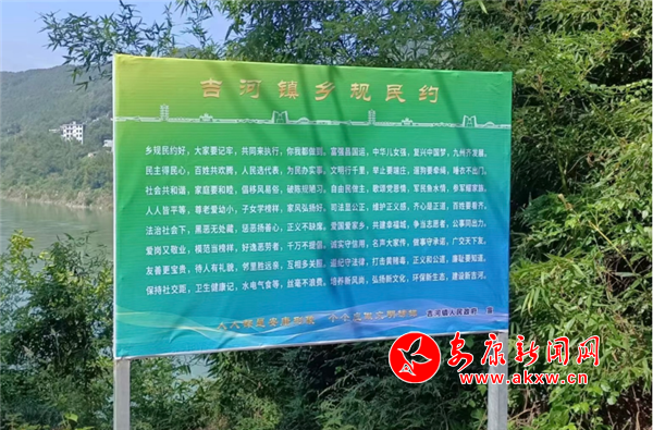 鄉村要美,美在文明;民風要正,正在村規。如今,漫步在吉河鎮任何一個村,主干道上、活動室周邊佇立的“村規民約”“善行義舉榜”“社會主義核心價值觀”宣傳牌都分外醒目,時刻提醒著村民要遵守行為規范,讓來往群眾在潛移默化中受到教育和熏陶。
