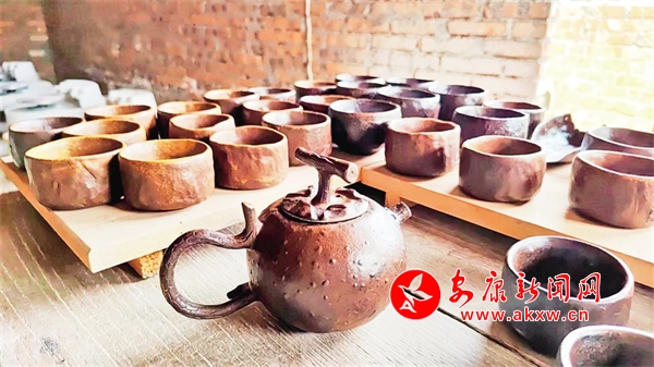2014年,來顯軍回到老家,通過實地考察、取土測試、復建磚房、盤好土窯和購置實驗電窯后,致力于挖掘保護、傳承柴燒制陶技藝。來顯軍說,安康漢水陶歷史悠久,更是安康非物質文化遺產中的絢麗瑰寶,承載著安康厚重的歷史文化和父老鄉親難以割舍的土陶情懷。從最初的愛好,再到不斷的創新,普通的泥巴,通過采土、浸泡、過濾、沉淀、曬泥、發酵兩年時間,然后還有制胚、修坯等十幾道工序,再被送進他自建柴窯中不間斷煅燒26個小時,最終化土為器,打造成精致的陶藝作品。