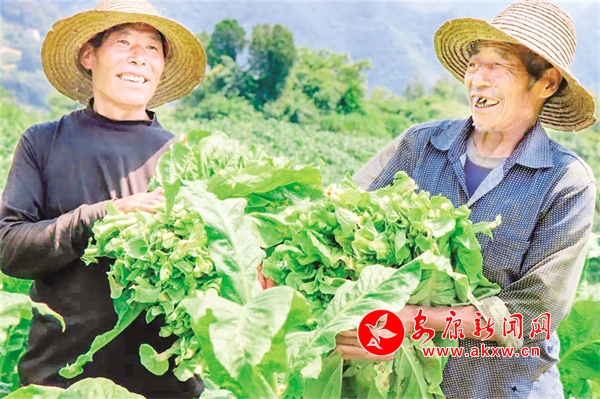 “今年前期雨水充沛,煙葉長勢特別好。我已經采第三爐了,估計每畝能收入4500元左右。”正在采摘煙葉的種植大戶杜月平說,“技術不愁,煙葉不愁賣。我今年流轉了10畝地,明年還要增加面積。現在種植烤煙的條件是越來越好,集中供苗,專業化烘烤,技術員全程指導,不但降低了勞動成本,而且還不用擔心技術問題,我們發展產業的底氣也越來越足。”