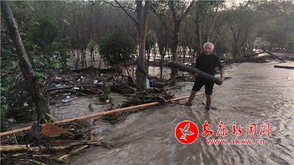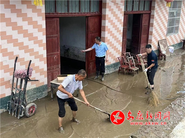 “小周呀,你休息會吧,全身都濕透了。”居民熊國強看著幫助清理淤泥滿頭大汗的鎮干部周文龍關心地說。