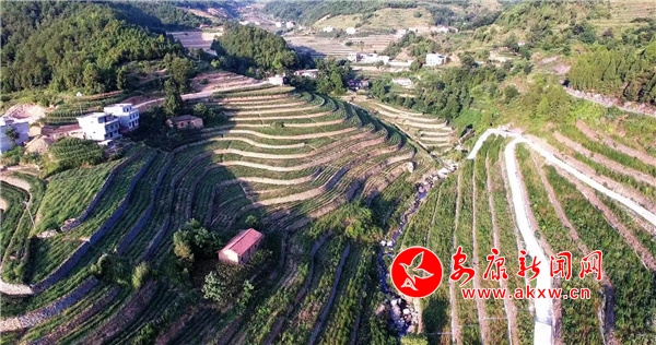 本網訊(通訊員 李永明 張媛)9月,站在瀛湖站王巖村清潔小流域綜合項目建設的山坡上,放眼望去,滿目青翠,萬畝蔥蘢,梯地里的玉米、大豆、白菜、南瓜等農作物成片,生機盎然,標準化的生產道路蜿蜒曲折,呈現出鄉村振興的生態優美畫卷。
