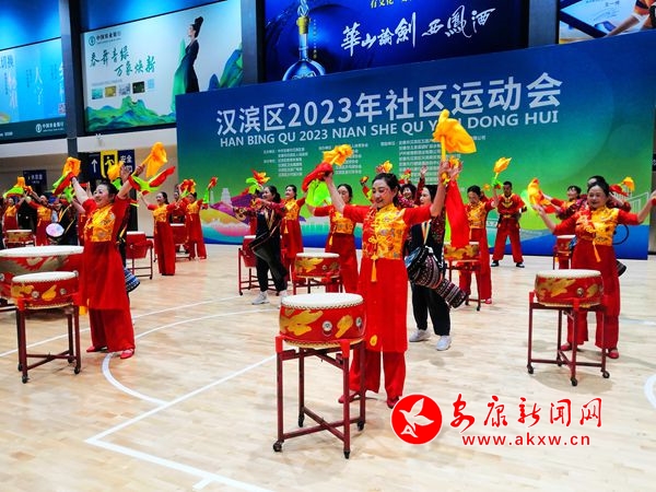 喜慶鑼鼓表演拉開了文體展演的帷幕。展演中,區老體協帶來了健身操舞《沒有共產黨就沒有新中國》《幸福安康》,新建中等職業技術學校表演了啦啦操《WAKE》,漢濱高中教育集團帶來了歌伴舞《幸福中國一起走》,區武術協會表演了傳統武術串燒,精彩的文體表演,動感十足,活力四射,多視角展示了全民健身成果,贏得了現場觀眾的陣陣喝彩;顒蝇F場,還組織了國民體質健康監測,吸引了參賽隊員及觀眾積極參與。
