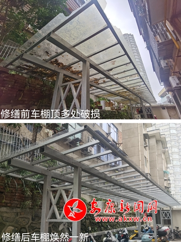 心系群眾,修繕車棚暖民心。作為新城辦安火路社區的共駐共建單位,區人社局事業單位黨支部持續深化“五同”工作機制創建工作,主動靠前認領“微心愿”,解決群眾的急難愁盼問題。近日,為了有效解決無物業鵬誠小區內車棚頂多處損壞,出現漏雨等問題,支部在“安心到”APP平臺上主動認領“微心愿”,立即行動,組織施工人員對破損的車棚頂部全部進行更新修繕,消除安全隱患,有效維護了居民停車安全。目前,車棚頂修繕工程已經順利完工。