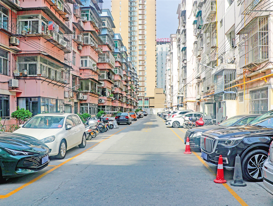 改造后的馨華園小區停車規范整齊。吳亞君 攝