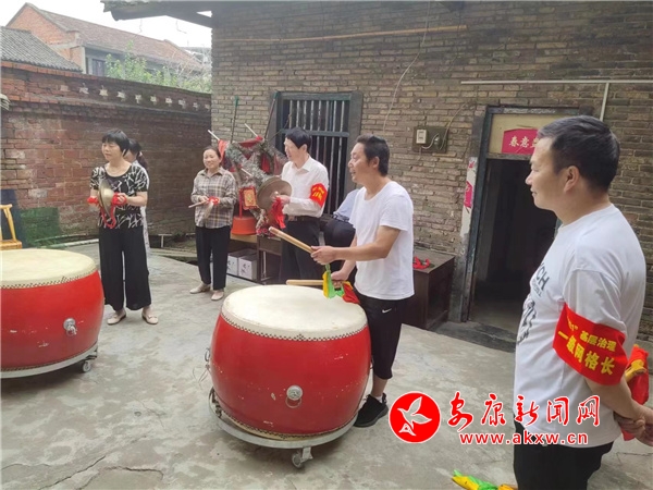“咚咚鏘,咚咚鏘,咚鏘,咚鏘,咚咚鏘……”晚飯后,在五里文體中心廣場,跟著老鼓手的敲打節奏,建立不久的五里社區鑼鼓隊正熱火朝天地練習。“空……