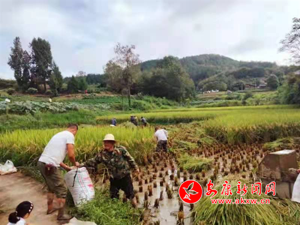 通訊員 張永林9月8日,在漢濱區流水鎮流水中心社區的稻田里,男女老少手揮鐮刀歡快地收割著成熟的稻谷,隨著小型脫粒機和傳統的“咚咚咚咚”拌桶聲,金黃色稻谷脫……