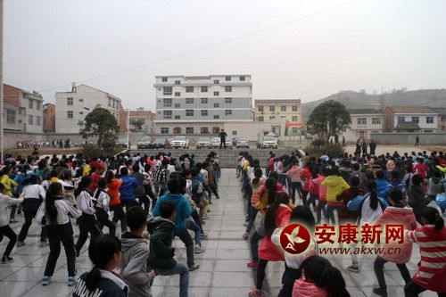 學(xué)生在大課間活動時(shí)間練武術(shù)操
