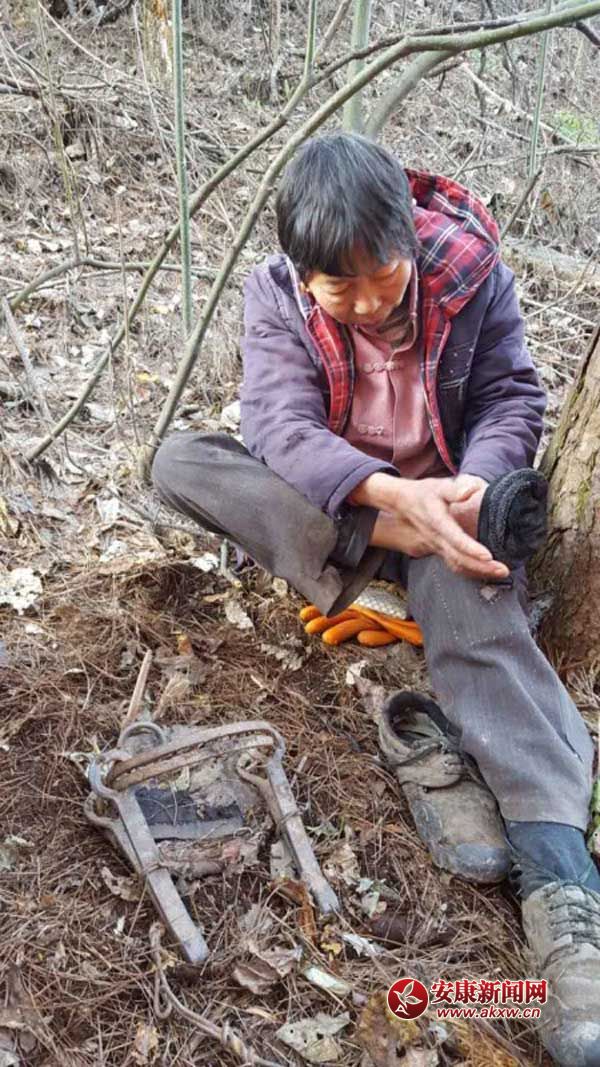 村民肖昌蘭告訴記者,當天上午,她和往常一樣早早的上山采摘野生獼猴桃換錢補貼家用。看到眼前這一片叢林中的獼猴桃并不是很多,她就想再往上走一段路,突然感覺右腳被什么東西夾住了。