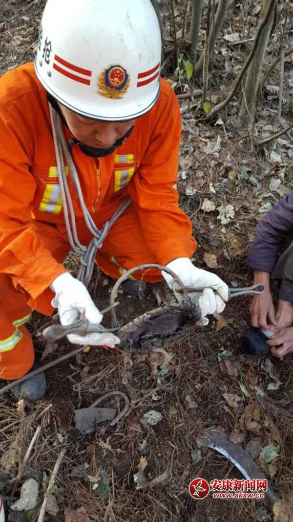 漢陰縣公安消防中隊接到報警后趕到到達現場,發現肖昌蘭被野豬夾給夾了,由于野豬夾時間長了,前面的齒已經生銹了,所以沒有對她的腳腕造成很大的傷害。消防戰士到達以后就根據現場情況把野豬夾了解了以后,兩名戰士用手把捕鼠(野豬)夾給掰開了。