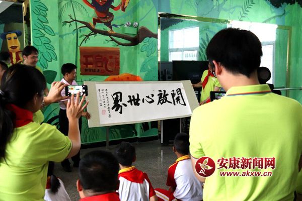 活動在蒲溪小學全體師生展示的“我的夢,中國夢”——籃球課間操中拉開了序幕。千人籃球操氣勢恢宏,全場震撼,“少年智,則國智;少年富,則國富;少年強,則國強……”千人朗誦響徹云霄。接著,在操場上,熱愛畫畫的孩子們拿起手中的畫筆盡情潑灑,揮灑他們的快樂,描繪他們的理想;在中糧可口可樂陜西公司精心裝扮的“開啟心世界”童話般的藝術教室里,孩子們與嘉賓進行了快樂互動,孩子們為嘉賓們佩戴了紅領巾,獻上了精彩的文藝節目;隨后,嘉賓們又相繼參觀了該校鄉村少年宮的美術、電子琴、書法等特色活動室。活動中,嘉賓對孩子們的表現給予充分肯定,對孩子們提出新的希望,并表示在后期將給該校繼續予以軟硬件支持。活動結束,餐廳里,孩子們熱情相邀叔叔阿姨與自己坐一塊兒,嘉賓們熱心地與孩子們談心,詢問孩子們家庭情況。