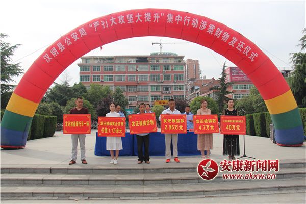 安康新聞網(wǎng)訊(通訊員 楊幫武 孫垚)破案+追贓+返贓,既是目標(biāo),也是責(zé)任,漢陰公安這樣想,他們也在這樣干。為充分展示漢陰公安“雷霆·2018”行動(dòng)和“嚴(yán)打大攻堅(jiān)大提升”集中行動(dòng)取得的成效,提升人民群眾的安全感和滿意度,6月11日上午,漢陰公安在鳳凰廣場(chǎng)舉行涉案財(cái)物發(fā)還儀式,對(duì)追繳的總價(jià)值100余萬元涉案財(cái)物進(jìn)行集中發(fā)還。局黨委副書記、政委魯軍,局黨委委員、副局長謝傳坤出席發(fā)還大會(huì)并講話,局黨委委員、刑偵大隊(duì)長李仕剛主持發(fā)還儀式。刑偵大隊(duì)、城關(guān)派出所、巡特警大隊(duì)民警、失主、漢陰中學(xué)部分師生、社會(huì)各界群眾共計(jì)200余人參加了發(fā)還大會(huì)。