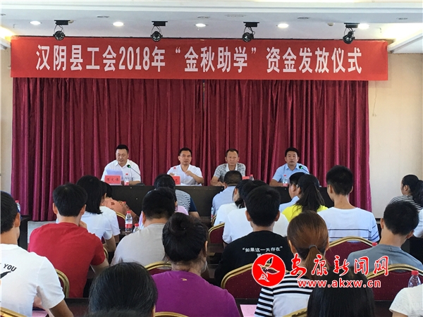 安康新聞網(wǎng)訊(通訊員 方靖 柯艷)8月29日,漢陰縣總工會(huì)舉行2018年“金秋助學(xué)”活動(dòng)助學(xué)金發(fā)放儀式,為該縣今年考上大學(xué)的62名困難職工、農(nóng)民工家庭大學(xué)生發(fā)放了3000元的一次性資助,幫助他們走進(jìn)大學(xué)繼續(xù)深造學(xué)習(xí),同時(shí)倡導(dǎo)各學(xué)子家庭簡(jiǎn)辦升學(xué)禮,不辦升學(xué)宴,大力弘揚(yáng)“誠(chéng)、孝、儉、勤、和”新民風(fēng),鼓勵(lì)受助學(xué)子克服困難,努力學(xué)習(xí),立志成才。縣文明辦、教體局,以及部分鎮(zhèn)和系統(tǒng)工會(huì)領(lǐng)導(dǎo)出席發(fā)放儀式。