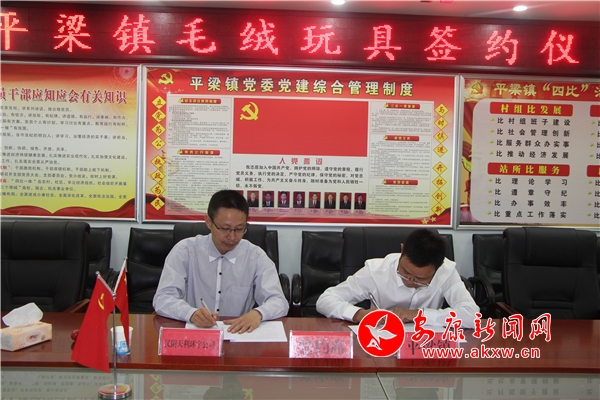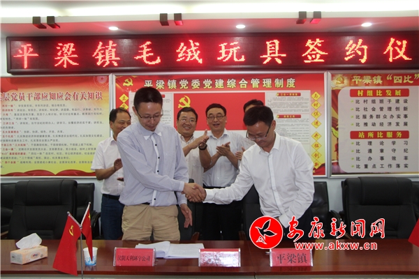 在當天的簽約儀式上,揚州天利玩具有限公司、揚州市樸席環宇玩具廠與漢陰縣平梁鎮簽訂了毛絨玩具招商項目協議書。裴謹副縣長要求該鎮和企業積極做好各項準備工作,迅速組織員工培訓和機械的運輸和安裝調試,確保10月中旬正式開機生產。