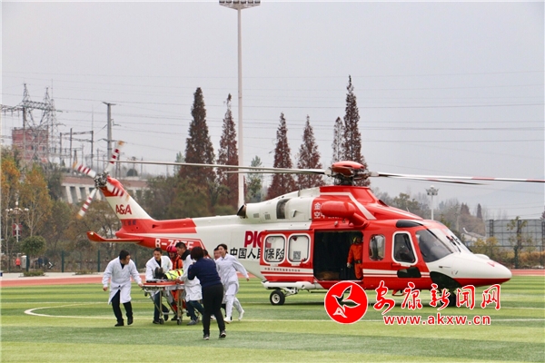 安康新聞網(wǎng)訊(通訊員 楊欣)11月22日,由安康漢陰縣人民政府主辦,漢陰縣政府辦(應(yīng)急辦)、漢陰縣衛(wèi)計(jì)局、上海金匯通用航空股份有限公司(簡(jiǎn)稱(chēng)“金匯通航”)陜西分公司、漢陰縣人民醫(yī)院承辦,多個(gè)單位協(xié)辦,聯(lián)合開(kāi)展“漢陰縣航空醫(yī)療應(yīng)急救援演練”活動(dòng)。漢陰縣人民醫(yī)院與金匯通航簽訂戰(zhàn)略合作框架協(xié)議并授牌。