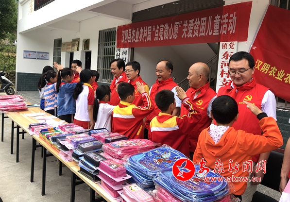 本網(wǎng)訊 (通訊員 張莉)一個(gè)嶄新的書包、一個(gè)心儀已久的文具盒、一盒書寫未來的鉛筆……每個(gè)孩子都應(yīng)被寵愛,每個(gè)夢(mèng)想都值得去灌溉。為了讓貧困留守兒童也享有同樣美好的節(jié)日,六一兒童節(jié)一大早,漢陰縣農(nóng)業(yè)農(nóng)村局領(lǐng)導(dǎo)干部前往幫扶聯(lián)系村漩渦鎮(zhèn)東河村,舉行“點(diǎn)亮微心愿、關(guān)愛貧困兒童”公益行活動(dòng),用實(shí)際行動(dòng)為貧困留守兒童送去愛心,送去歡樂,給他們更多的“精細(xì)關(guān)愛”,讓夢(mèng)想、信心與愛重回孩子們的心中。
