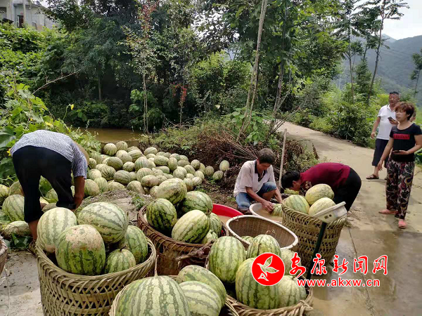 羅朝艷帶領著村民,頂著烈日采摘西瓜,統一收購貧困戶西瓜,然后在集中一起,裝車、轉運、16噸西瓜用廂式大貨車運到浙江溫州一帶統一出售。預計收入50000元左右,雖然天氣炎熱,但羅朝艷的臉上洋溢著豐收的喜悅。2ff安康新聞網