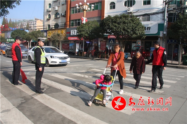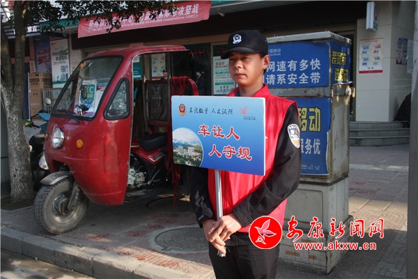 10月30日,該縣公安局20余名志愿者們身穿紅馬甲,手持小紅旗來到無交通信號(hào)燈北城街與解放街十字路口,通過揮動(dòng)小紅旗、文明勸阻等方式,引導(dǎo)過往行人過馬路走斑馬線,提醒過往車輛減速慢行、禮讓行人,幫助老年人、到小孩的婦女、兒童、殘疾人等有困難的群眾安全過馬路,倡導(dǎo)“機(jī)動(dòng)車禮讓斑馬線,機(jī)動(dòng)車按序排隊(duì)通行,機(jī)動(dòng)車有序停放,文明使用車燈,行人、非機(jī)動(dòng)車各行其道,行人、非機(jī)動(dòng)車過街遵守信號(hào)”六大文明交通行為。EVD安康新聞網(wǎng)