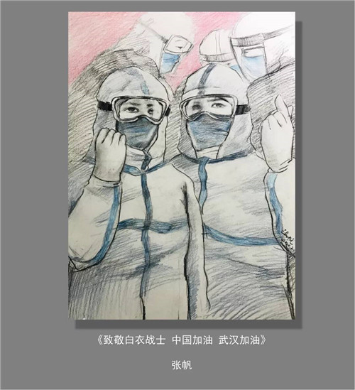 據了解,各學校師生在做好自身防控工作的同時,密切關注奮斗在抗疫第一線的英雄們,用自己的畫筆創作出形式多樣、豐富多彩的謳歌抗“疫”精神的作品,以發揮自己的一技之長,以書畫宣傳正確的阻斷疫情的方法,普及相關知識,呼吁人們尊重自然,保護生態環境,以書畫向最美“逆行者”們致敬。禮贊英雄,呼喚友愛,助力“抗疫”,致敬醫護人員,致敬在前線的英雄們。