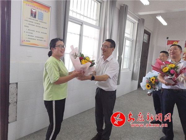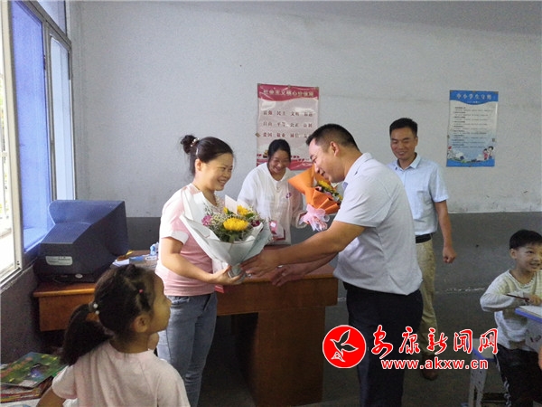 每到一所學校,校委會成員親手為教師們獻上鮮花、口杯等禮物,并與大家親切交談,詳細了解學校教學活動開展情況和教師們的生活、工作情況,同時向辛勤耕耘,默默付出的教師們致以崇高的敬意和真摯的祝福。