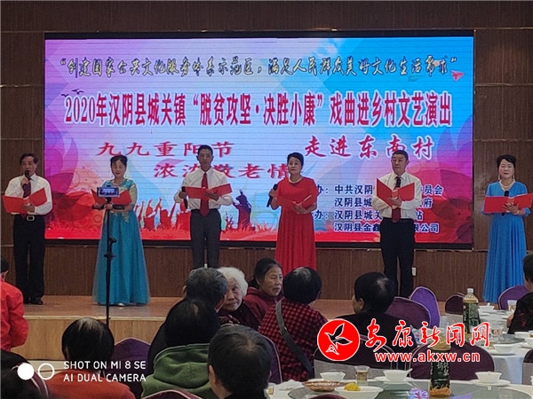 本網訊 九九重陽節,濃濃敬老情,漢陰縣城關鎮東南村在老年節來臨之際,組織全村60歲以上200余位老人參加重陽敬老活動,邀請老人一起赴宴共享佳節,金秋藝術團還為老人們獻上了精彩的歌舞表演。K66安康新聞網