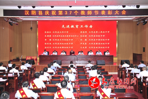 本網訊(通訊員 林愛銘 汪付艷 陳浩 )9月10日,漢陰舉行慶祝第37個教師節暨表彰大會,唱響教育優先發展主旋律,弘揚尊師重教好風氣,激勵全縣廣大教師和教育工作者賡續百年初心、擔當育人使命。