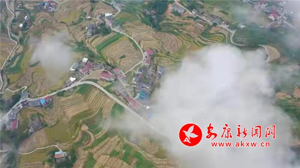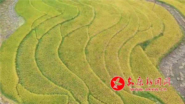 從空中俯瞰,在漫漫云海的覆蓋下,綿延數十公里的古梯田,層層環抱著山脊,從山腳盤繞到山頂,其線條如行云流水,其規模磅礴壯觀,與青山相互交融,盡顯自然和諧。走在田間的小道上,稻香撲面而來,粒粒飽滿的稻穗隨風搖曳,村民們正搶抓晴好天氣,忙著收割、打粒、裝袋。放眼望去,金黃的稻田、翠綠的山巒和勤勞的村民勾勒出一幅優美的豐收畫卷。