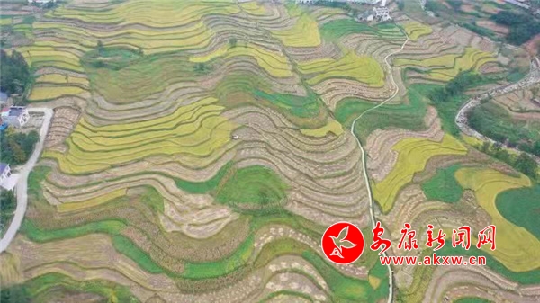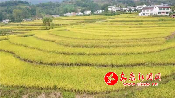 本網訊(通訊員 黃智發 王建霞)金秋時節,漢陰縣鳳堰古梯田的水稻進入成熟期。在青山白云映襯下,層層疊疊的梯田翻起金色的稻浪,美如畫卷。