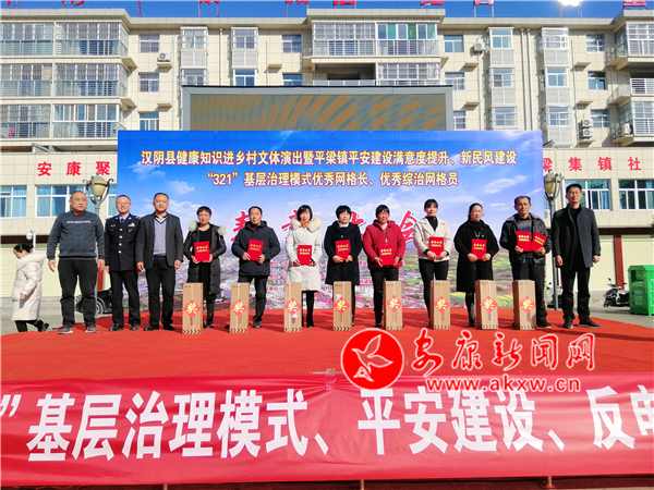 本網訊(通訊員 歐定揚 鄧麗 張成軍)12月2日,漢陰縣舉行衛生健康知識宣講和文藝巡演進鄉村暨平梁鎮321基層治理模式優秀網格長、優秀綜治網格員表彰大會。普及衛生健康知識,全面提升城鄉廣大人民群眾的健康水平
