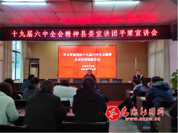 本網(wǎng)訊(通訊員 陳小磊)為了讓黨的十九屆六中全會(huì)精神往深里走、往實(shí)里走、往基層干部心里走,漢陰縣委宣講團(tuán)12月13日深入平梁鎮(zhèn)宣講黨的十九屆六中全會(huì)精神。