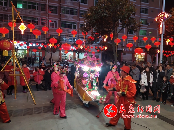 平梁鎮(zhèn)沐浴河村的采蓮船來到了縣城進(jìn)行賀新春歡度元宵節(jié)慰問演出活動(dòng)。彩船花枝招展,鮮亮耀眼。彩船旁邊的4位婀娜多姿的伴舞者,邁著輕盈的秧歌舞步,舞動(dòng)腰間的彩綢帶,為群眾送上優(yōu)美、中聽、吉祥的話語,送去新春的恭賀祝福和濃郁的鄉(xiāng)情與熱情,深受干部居民群眾的歡迎。
