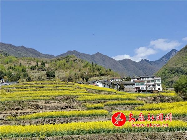空中俯瞰,萬(wàn)畝高低起伏的油菜花海掩映在山間,水田、民居星羅棋布點(diǎn)綴在宛如鋪展開(kāi)來(lái)的畫布上,綿延數(shù)十里的油菜花競(jìng)相怒放,流金溢彩,置身其間,美不勝收。漫步在延伸的鄉(xiāng)間小道,兩旁簇?fù)淼挠筒嘶▽訉盈B疊,與遠(yuǎn)山對(duì)稱,與藍(lán)天相接,如夢(mèng)如幻,一朵朵嬌嫩的花兒隨風(fēng)搖曳,散發(fā)出耀眼的光芒。在綠色葉片的映襯下,四片小花瓣整齊地圍繞著花蕊,春風(fēng)一吹,一簇簇的油菜花仿若涌動(dòng)的金浪,撲鼻而來(lái)的花香也引得蜜蜂也在花間輕吟低唱、翩然起舞,構(gòu)成了一幅春風(fēng)和煦,美輪美奐的春日田園風(fēng)景畫。