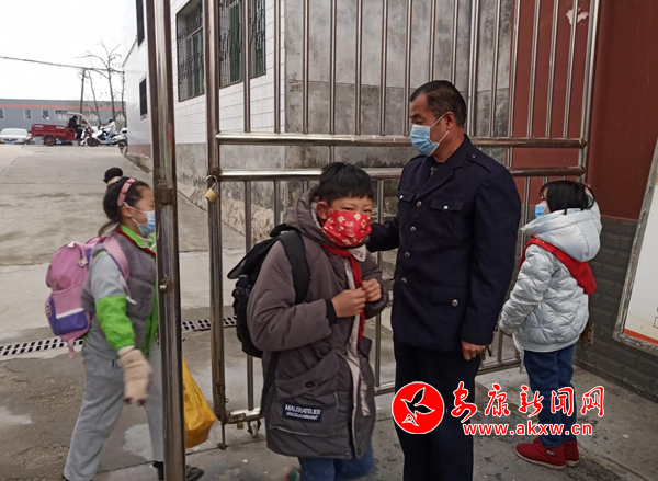 每天早晨,在漢陰縣澗池鎮東岳小學大門口,年近60歲的保安王懷軍就早早地等候在那里配合當天值日教師,為走進學校的教師和學生檢測體溫,提醒到校學生注意在校安全。
