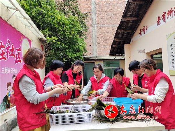 志愿者們熱情迎接前來參加活動(dòng)的老年朋友,并為他們奉上親手包的粽子等食品。文藝志愿者表演了具有傳統(tǒng)風(fēng)情的開場(chǎng)舞《粽香萬家》,隨后表演唱、三句半、等節(jié)目輪番登場(chǎng),或唱響鄉(xiāng)村振興,或展示文明新風(fēng),或宣傳疫苗接種,這些節(jié)目寓教于樂,現(xiàn)場(chǎng)歡聲笑語,掌聲不斷。